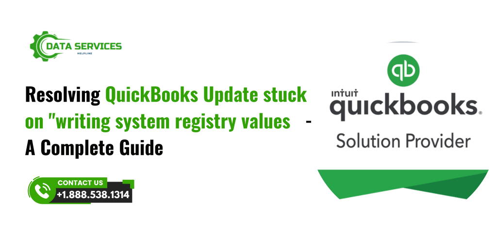 I’ve encountered an issue where my QuickBooks update gets stuck on writing system registry values. How can I resolve this?